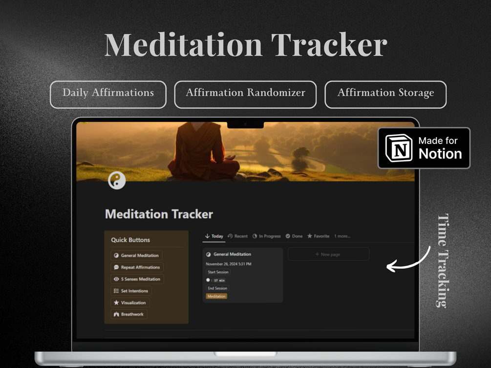 This Meditation Tracker is designed to help you cultivate a consistent meditation practice. It offers a user-friendly interface, customizable templates, and insightful analytics to support your mindfulness journey.