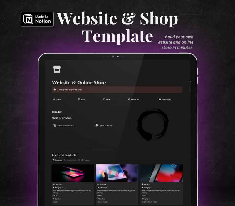Launch your website and online store quickly and easily with this all-in-one Notion template!
