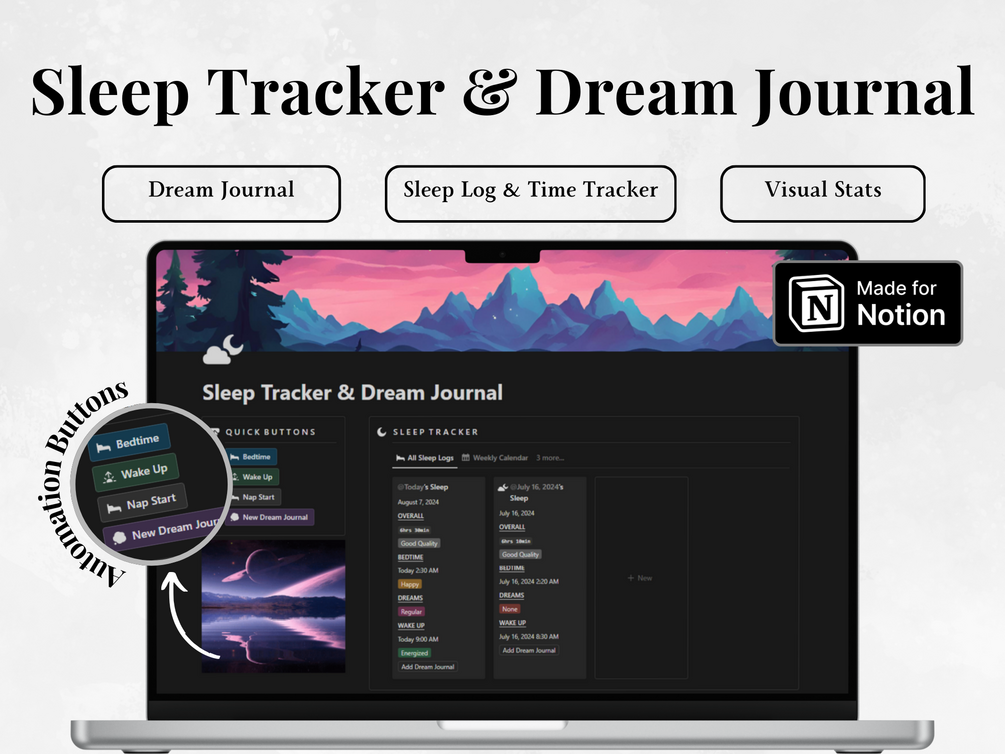 Take control of your sleep patterns with this FREE Notion Sleep Tracker & Dream Journal Template.